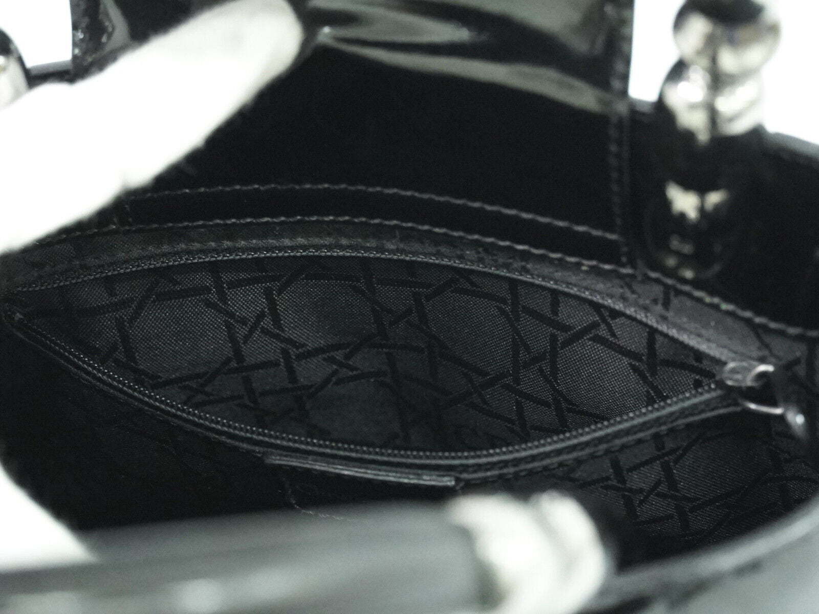 Introducing the Christian Dior Maris Pearl tote in sleek black patent leather, enhanced with silver hardware for a touch of sophistication. This stylish tote is designed with practicality in mind, featuring a practical interior with a zipped pocket.