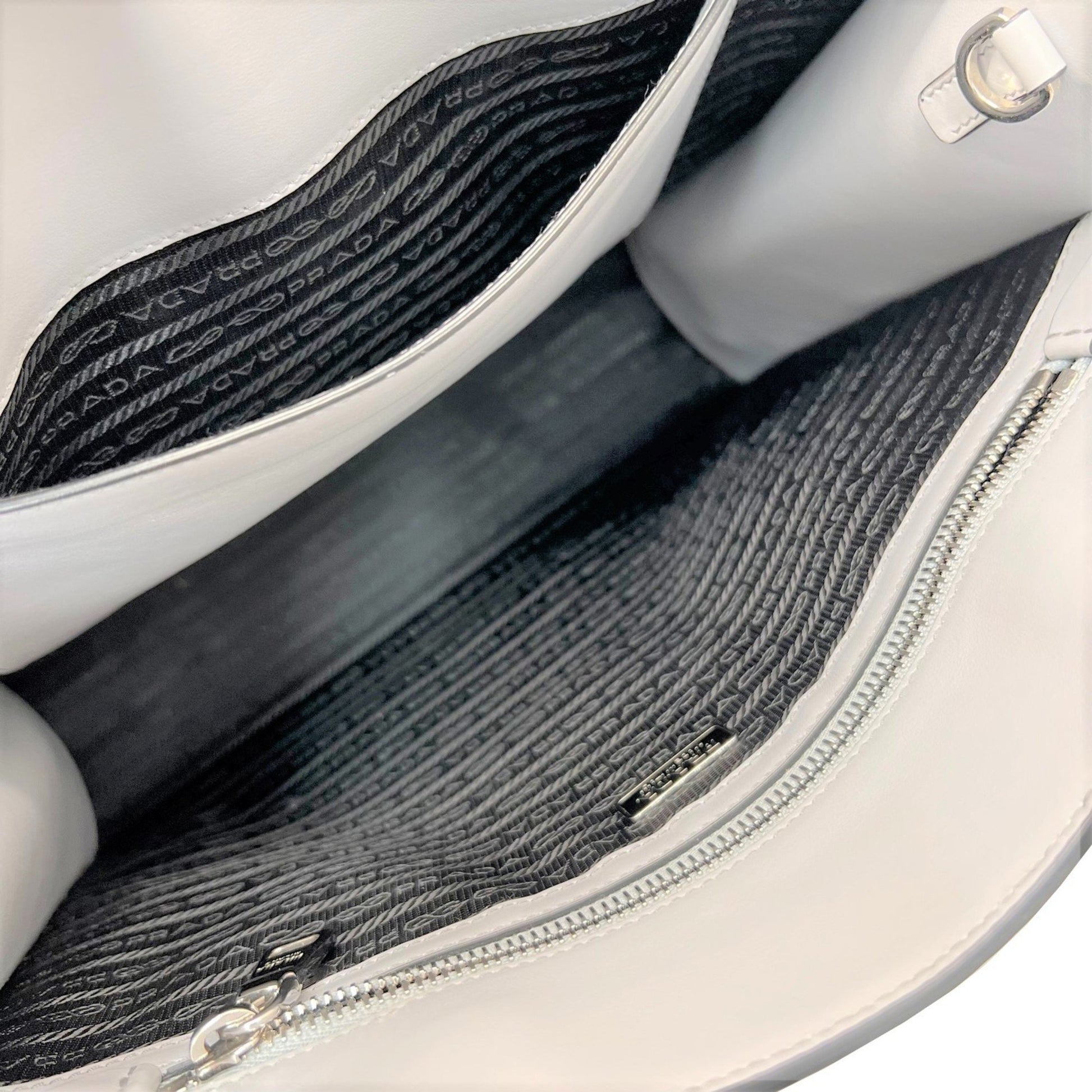 The handbag Triangle logo of the famous brand Prada, made of leather with an elegant and timeless design, is a fashion accessory well suited for women. With its gray color and its high-quality material, this handbag is both functional and aesthetic.